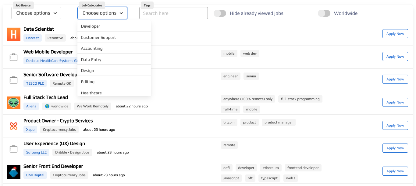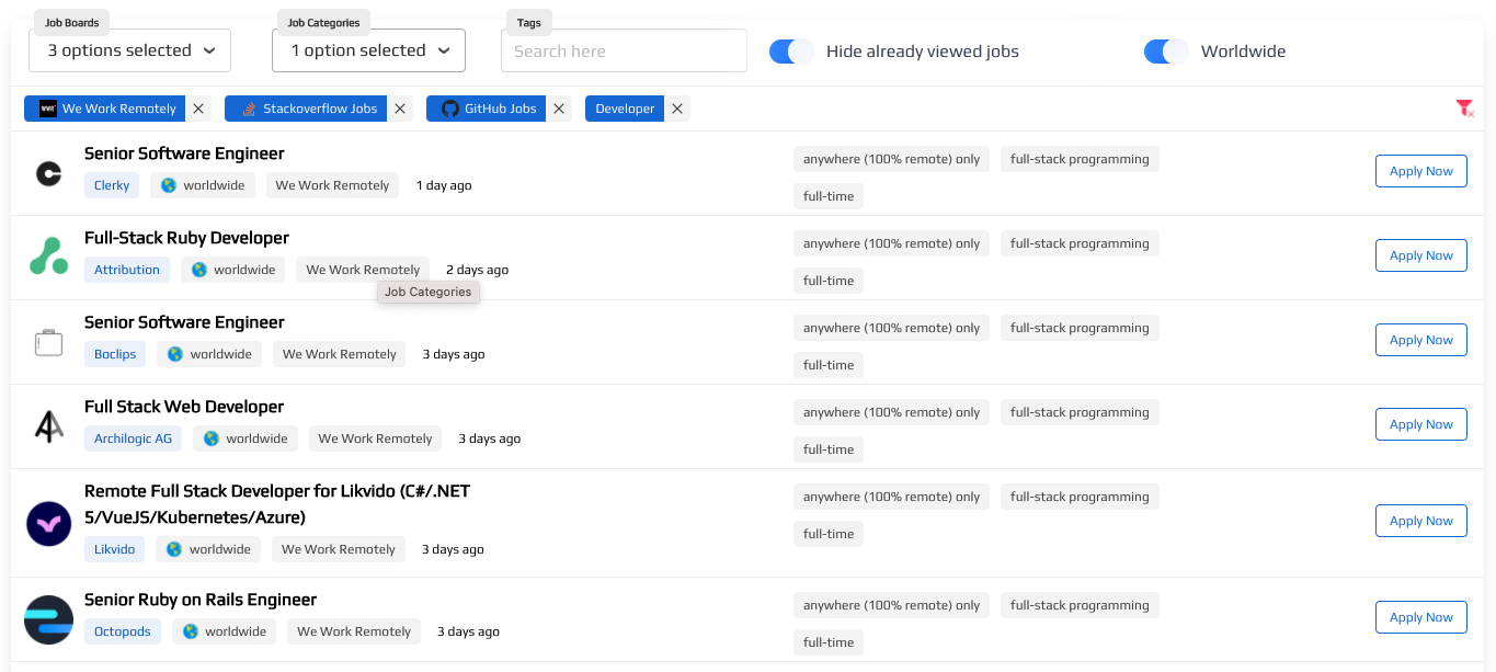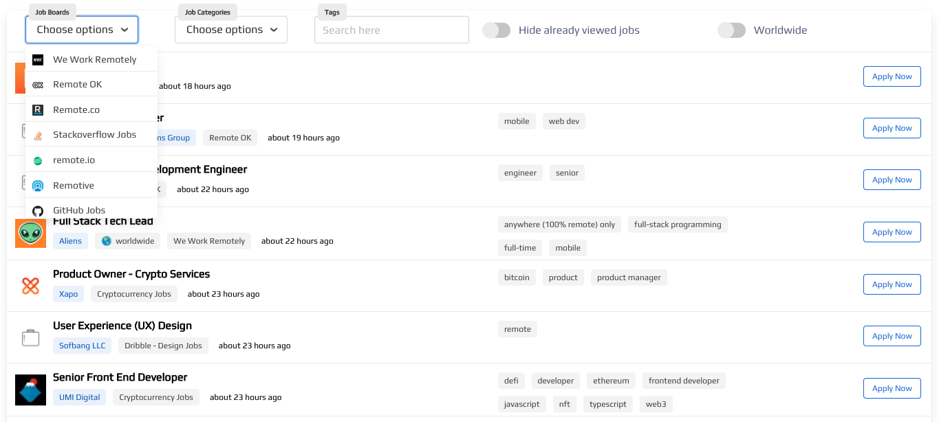 You can view remote jobs from the top remote job boards in one place. If you want to refine your search you can view remote jobs job board basis as well.