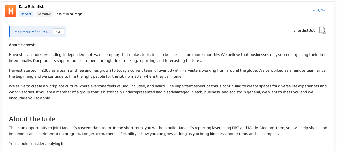 If the job matches with your skill set you can shortlist to review later point of time or you can apply it by going to their careers site. Once you apply for the job mark the job as applied to track it, so that It will be useful in future job hunts.