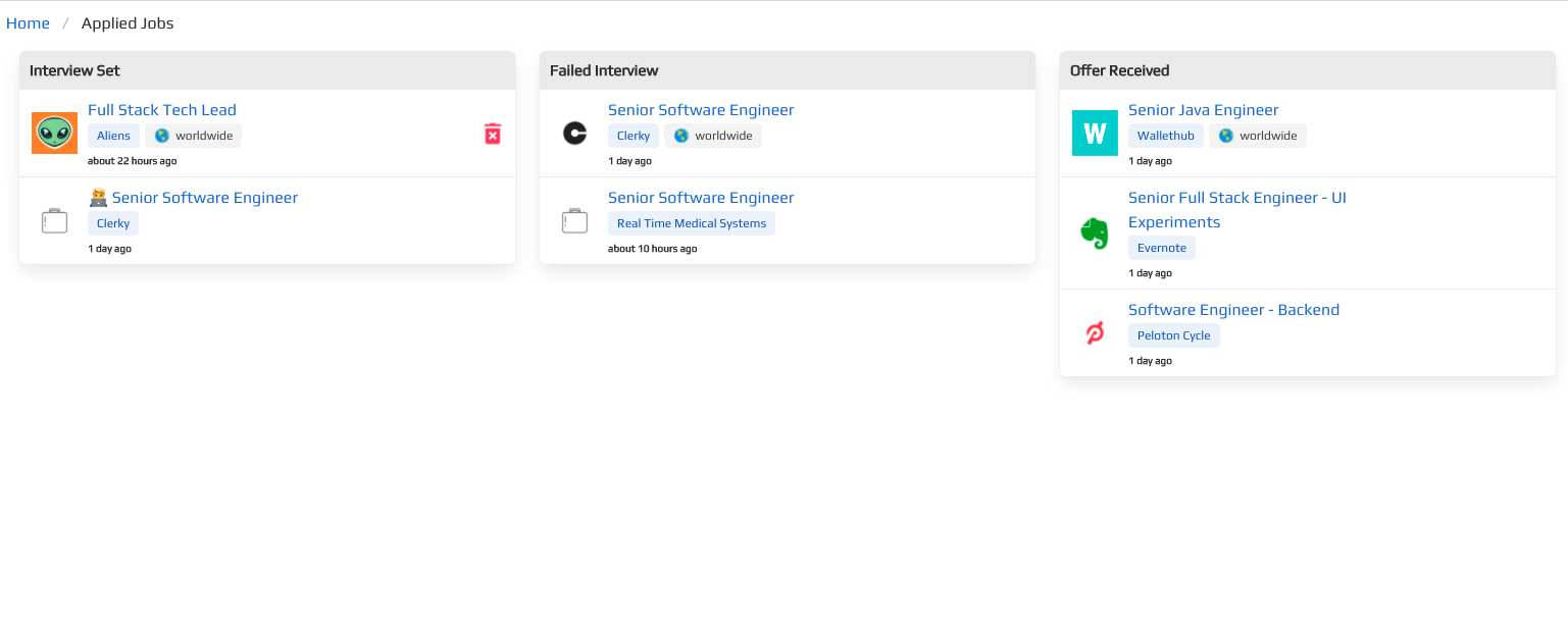 You can track your job hunt with the help of kanban board. Here you can see for how many jobs you have applied and how many applications are accepted etc.
